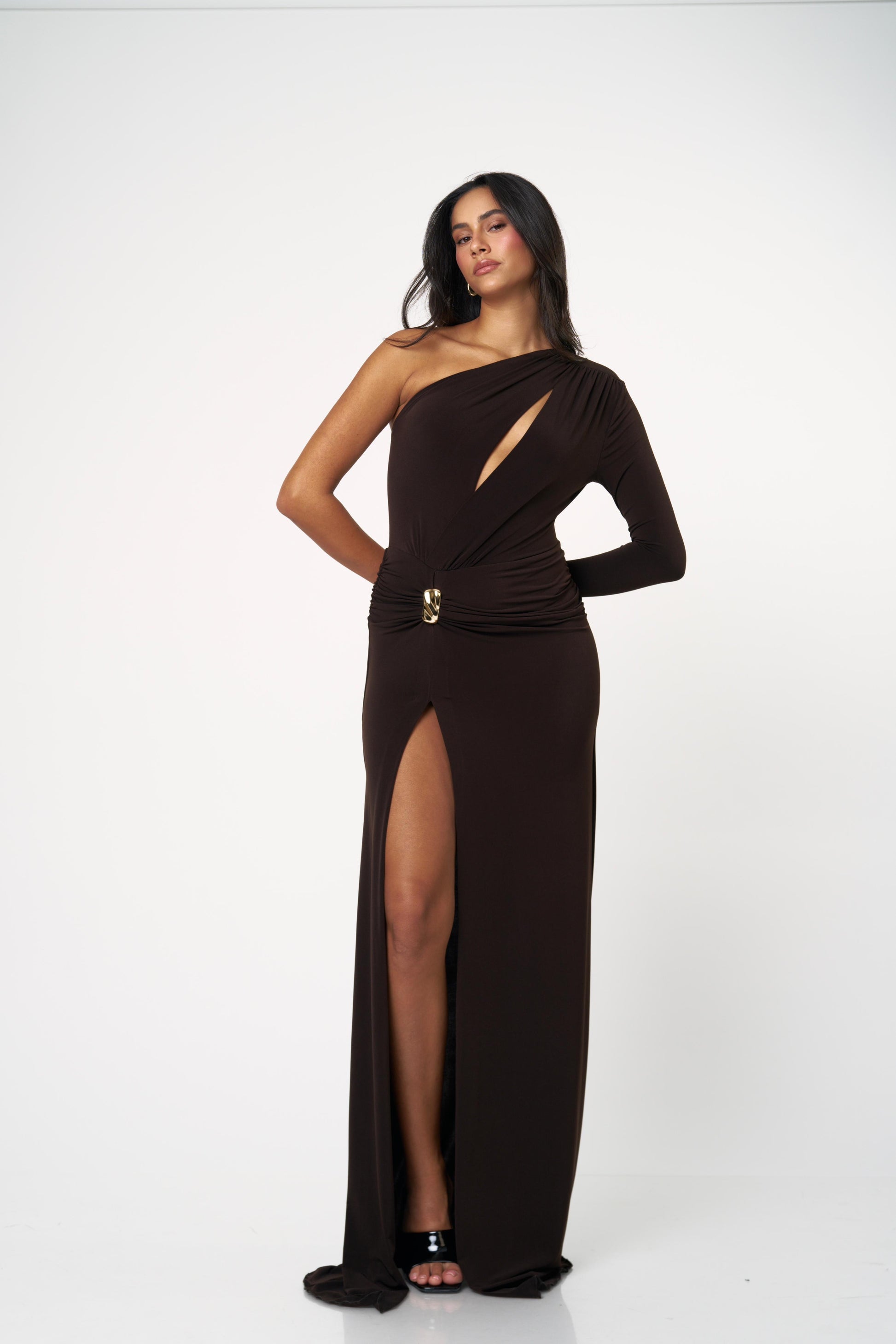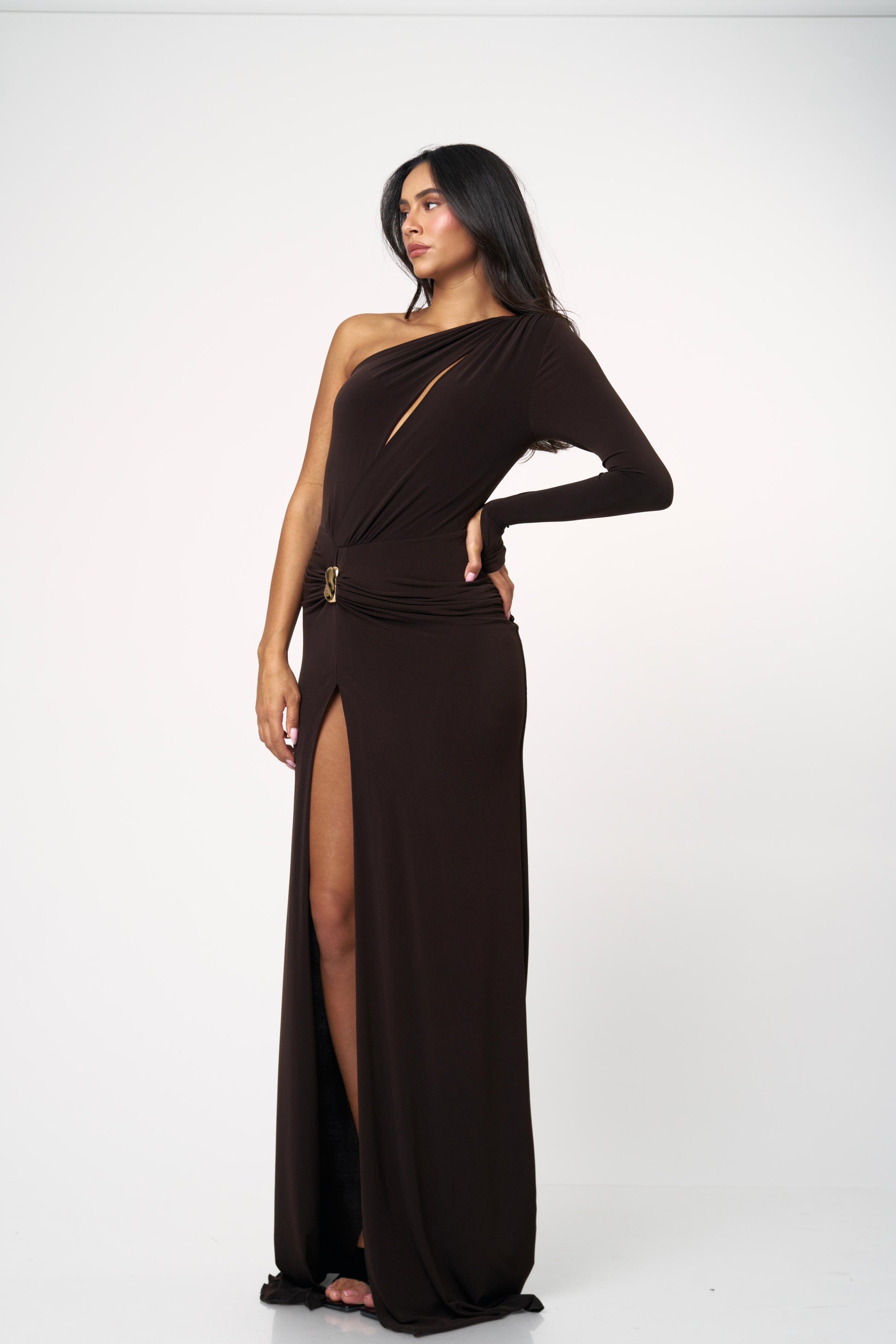 שמלת מקסי בגזרת כתף אחת עם מפתח בחזה