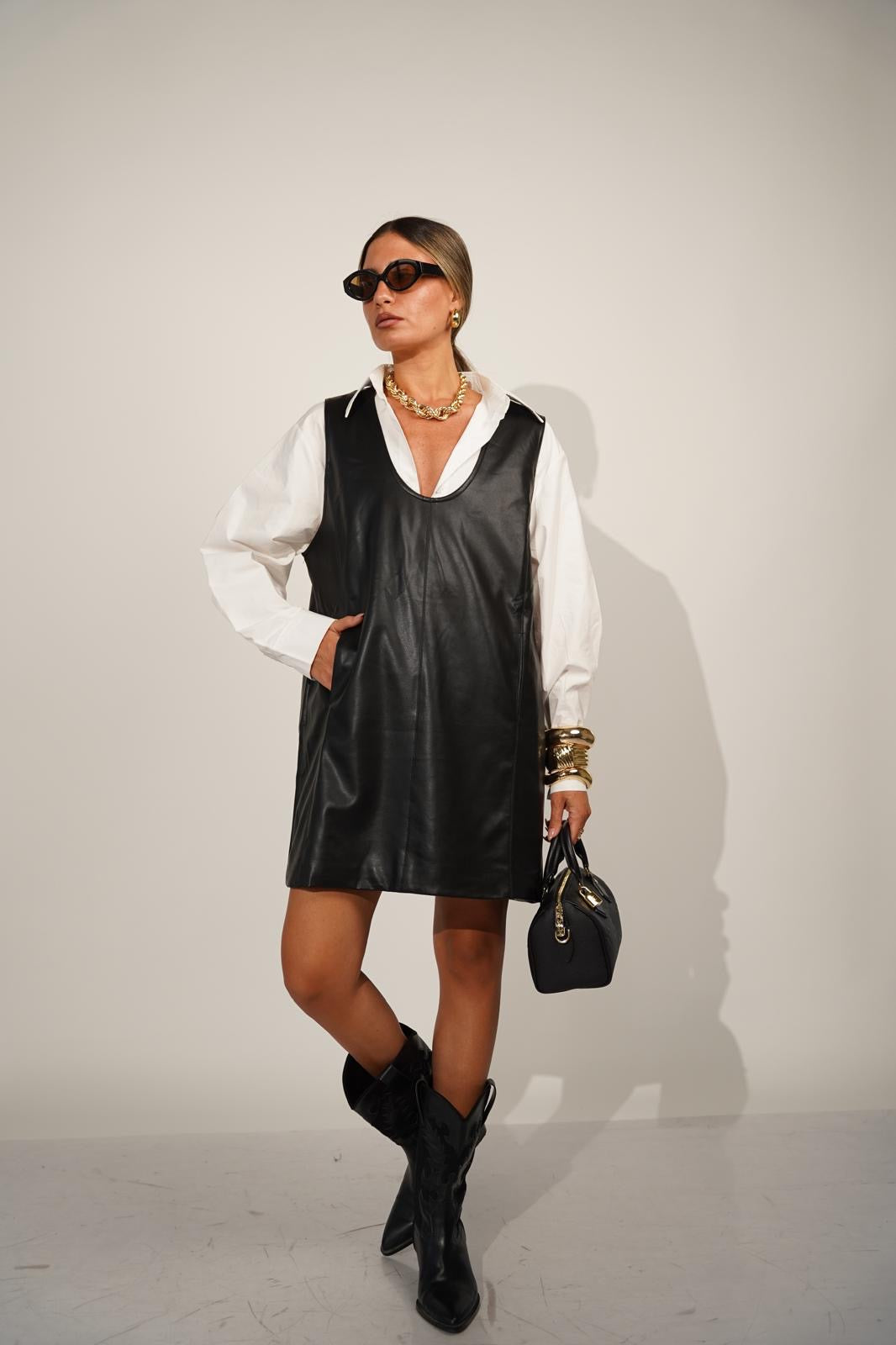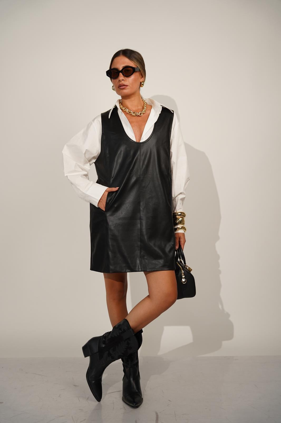 גזרת אוברסייז במפתח עגול וכיסים בצידי השמלה